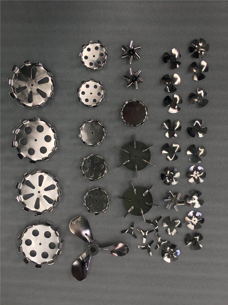 根据搅拌器的运动方向与叶轮表面之间的夹角,可以将各种搅拌叶轮形状分成三类,即直叶片,折叶叶片和螺旋叶片。桨式,涡轮式,锚式叶轮,框架型等均为直叶片或折叠叶片,而螺旋桨,螺旋型和带状叶轮均为螺旋叶片。